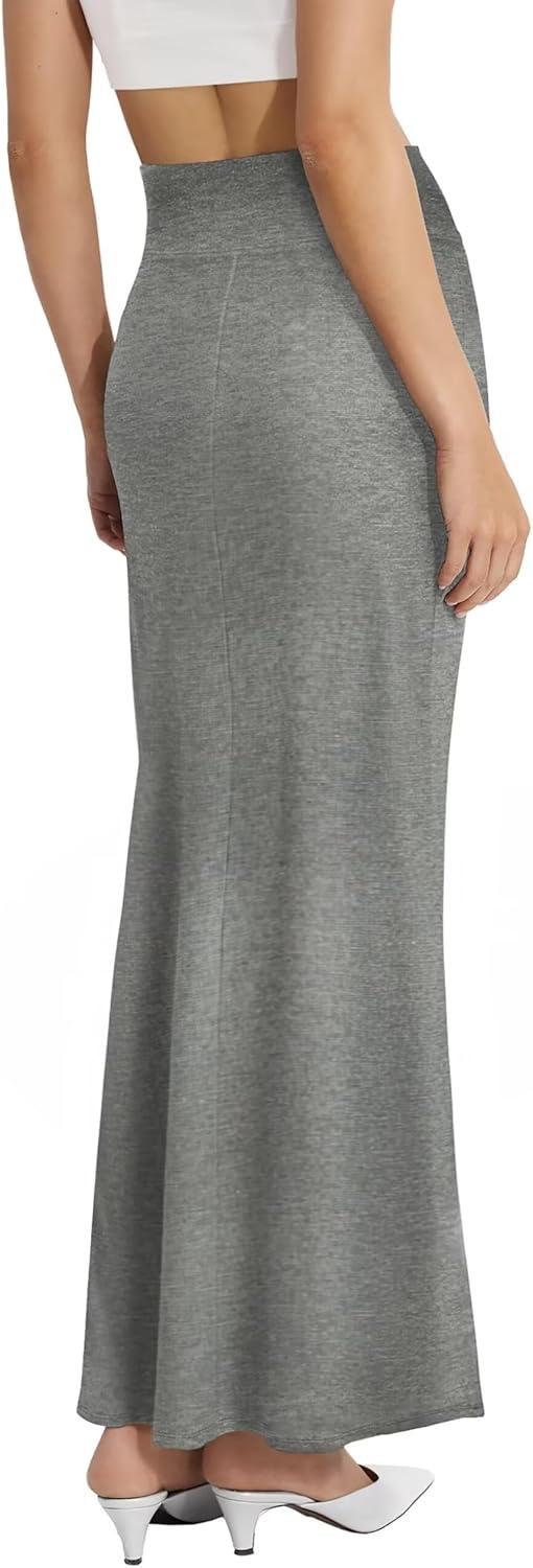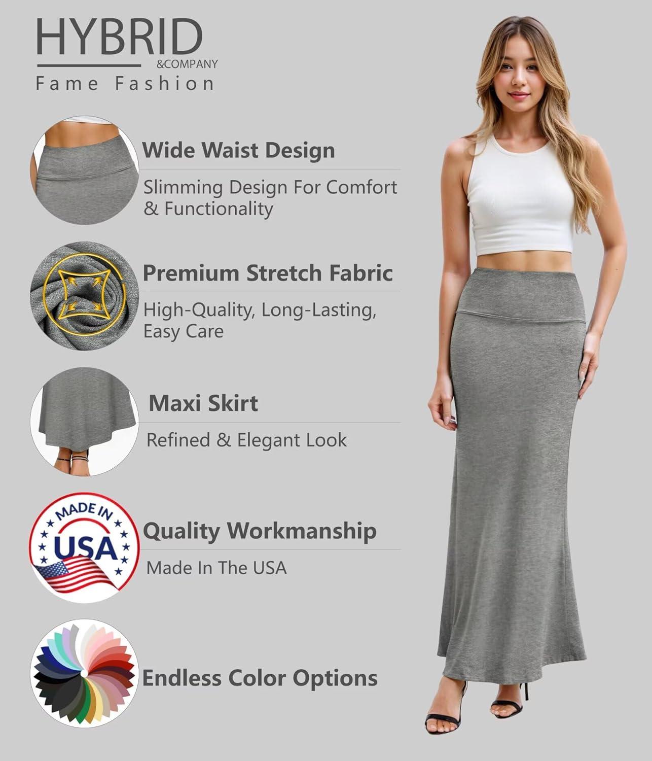 Hybrid & Company Women’s Stretch Lightweight Flowy Maxi Skirt – Casual Fold Over Waist, Made in USA(Ksksd9500-1017-heathergre)