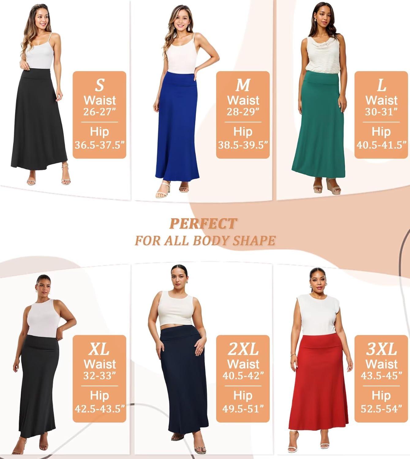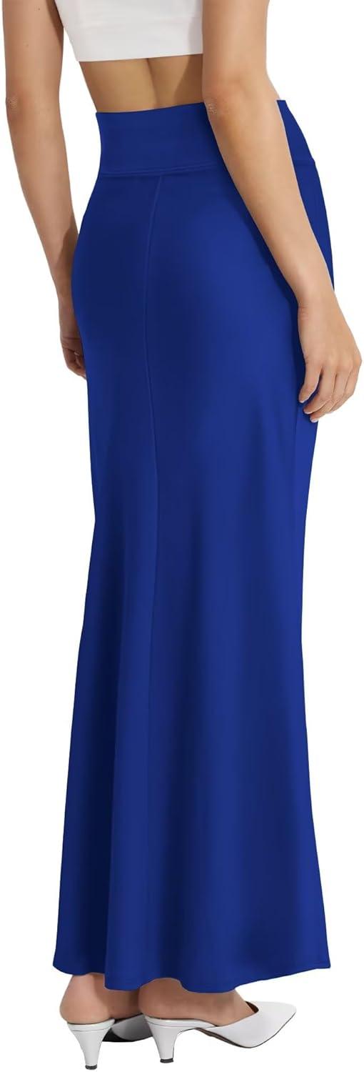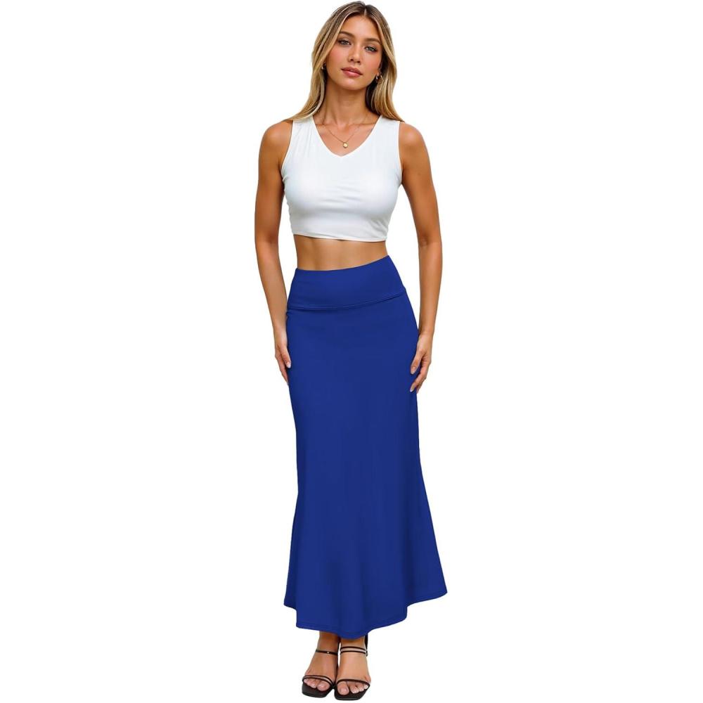 Hybrid & Company Women’s Stretch Lightweight Flowy Maxi Skirt – Casual Fold Over Waist, Made in USA(Ksksd9500-1017-royal)