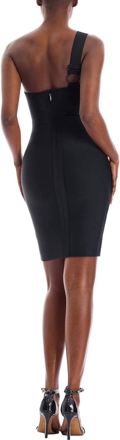 Hybrid & Company Womens Stylish One Shoulder Knotted Bodycon Straps Dress(Drbdh243-black)