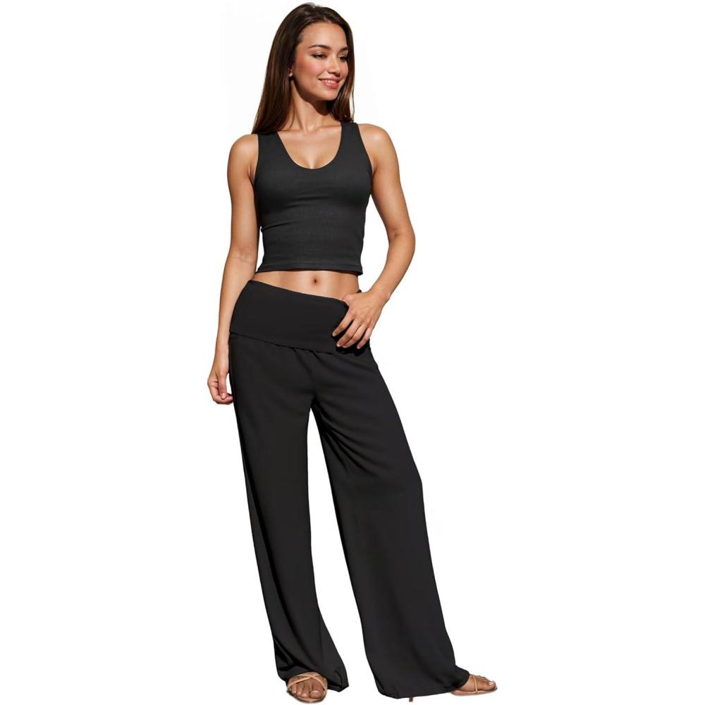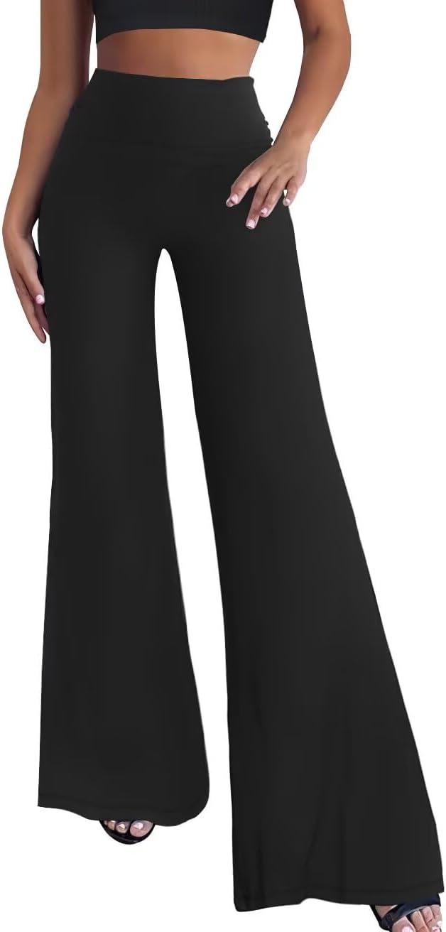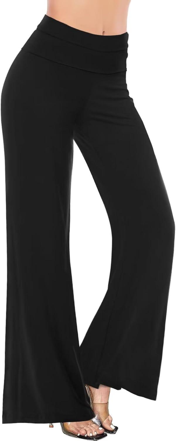 Hybrid & Company Womens Super Comfy Flowy Wide Leg Palazzo Pants Made in USA(Black)