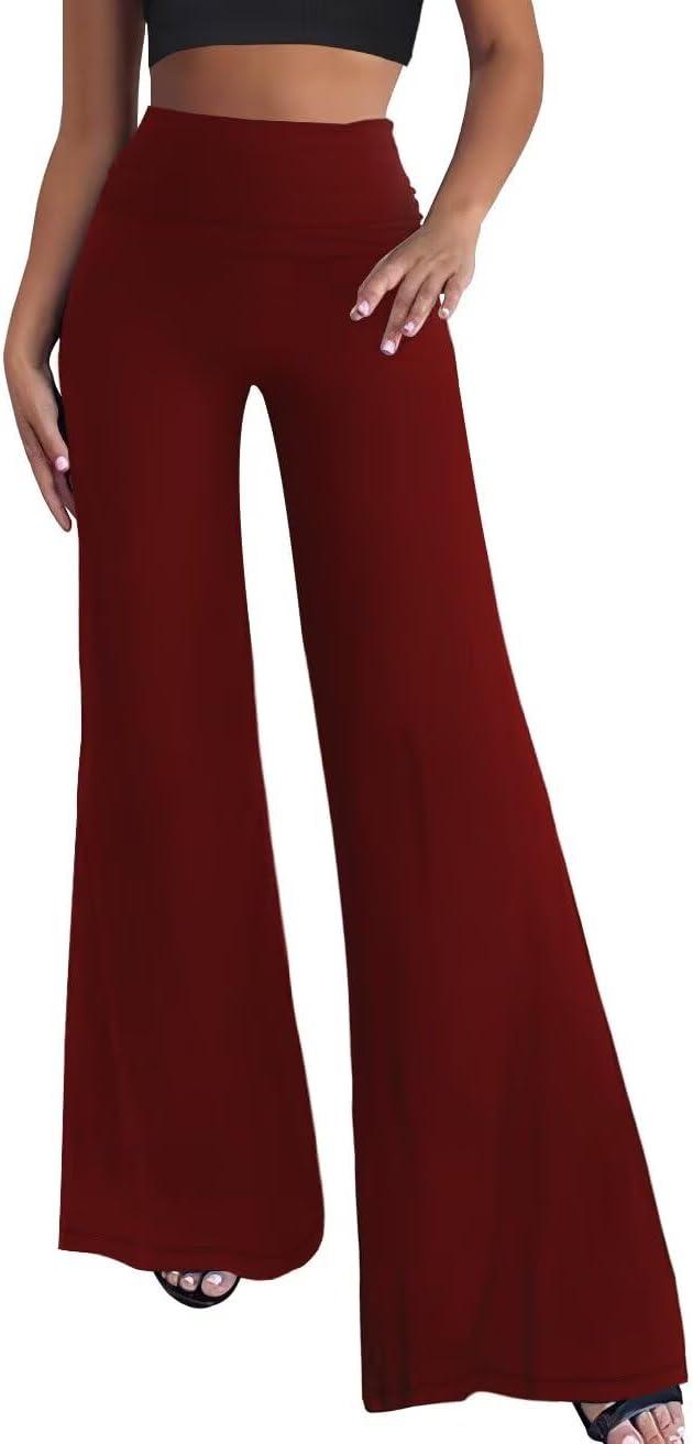 Hybrid & Company Womens Super Comfy Flowy Wide Leg Palazzo Pants Made in USA(Wine)
