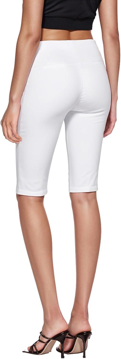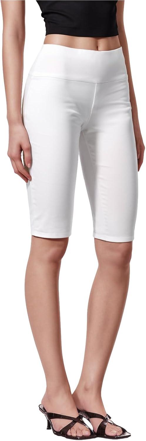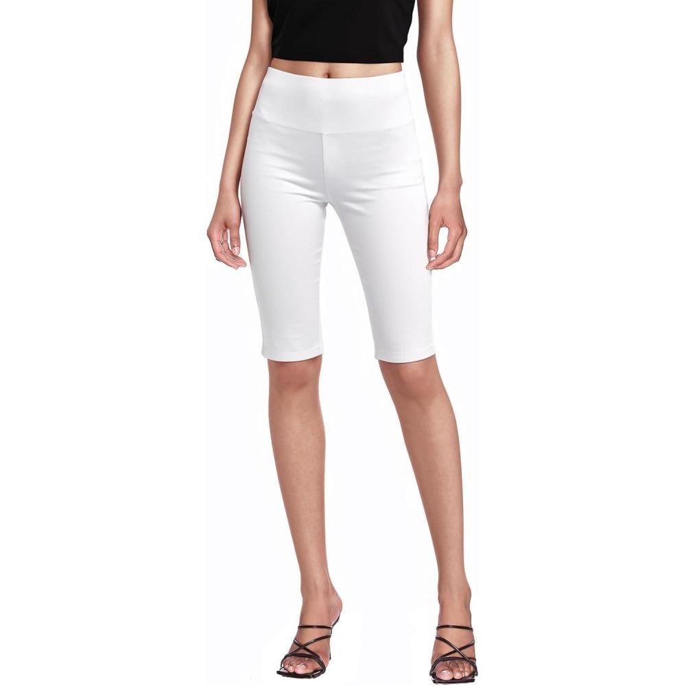 Hybrid & Company Womens Super Comfy Stretch Pull On Millennium Twill Capri Shorts(Bermuda-white)