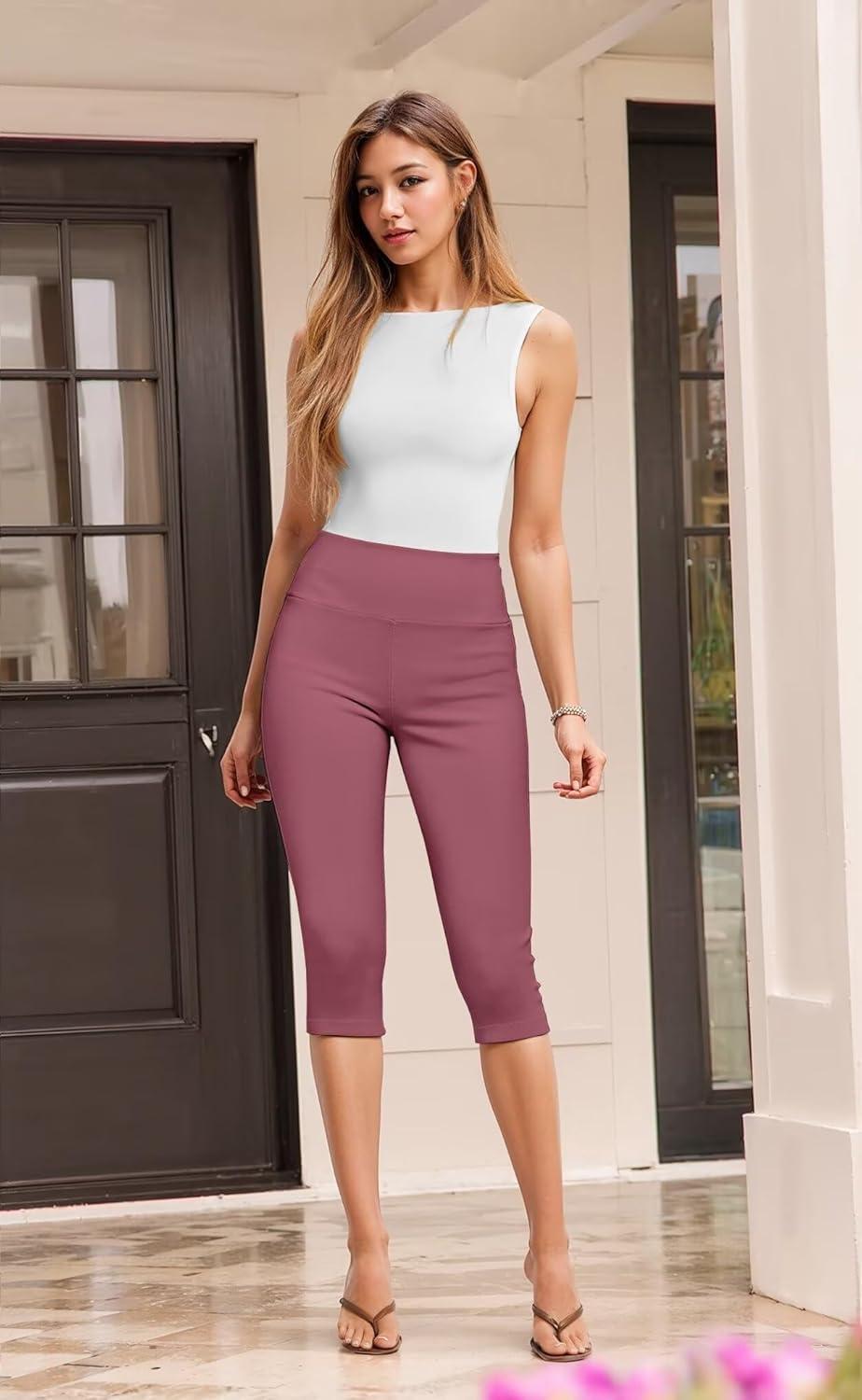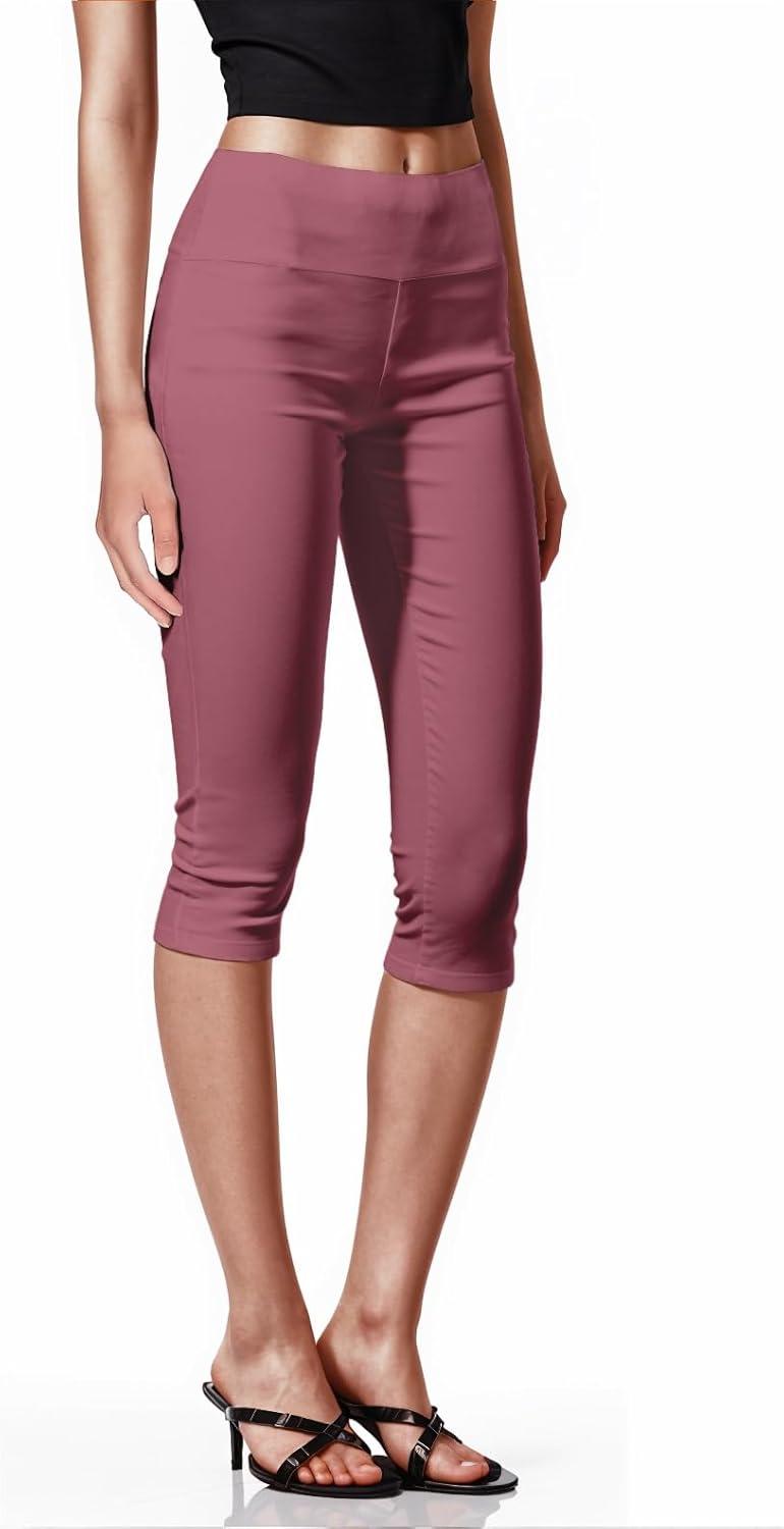 Hybrid & Company Womens Super Comfy Stretch Pull On Millennium Twill Capri Shorts(Capri-mauve)