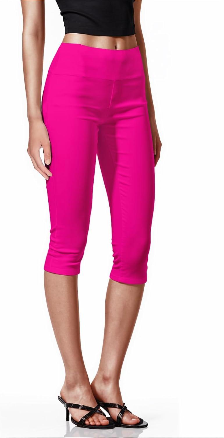 Hybrid & Company Womens Super Comfy Stretch Pull On Millennium Twill Capri Shorts(Capri-neopnk)