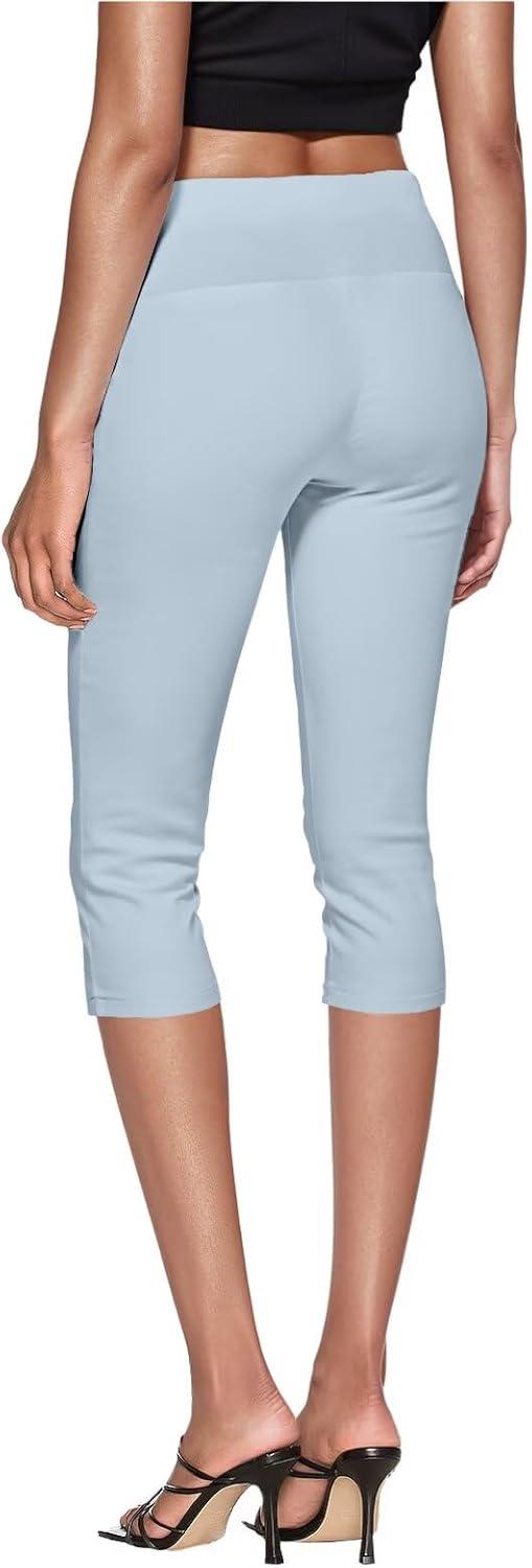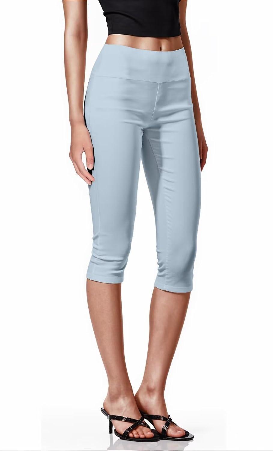 Hybrid & Company Womens Super Comfy Stretch Pull On Millennium Twill Capri Shorts(Capri-powder Blu)