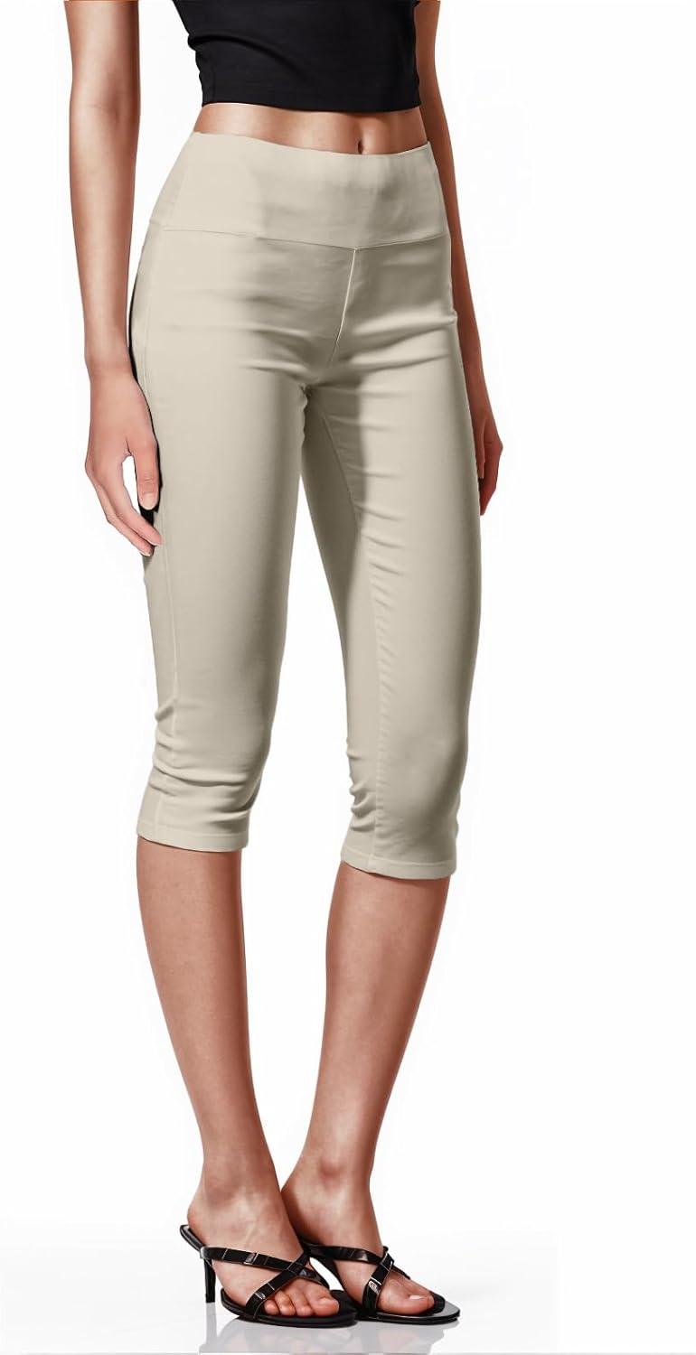 Hybrid & Company Womens Super Comfy Stretch Pull On Millennium Twill Capri Shorts(Capri-stone)
