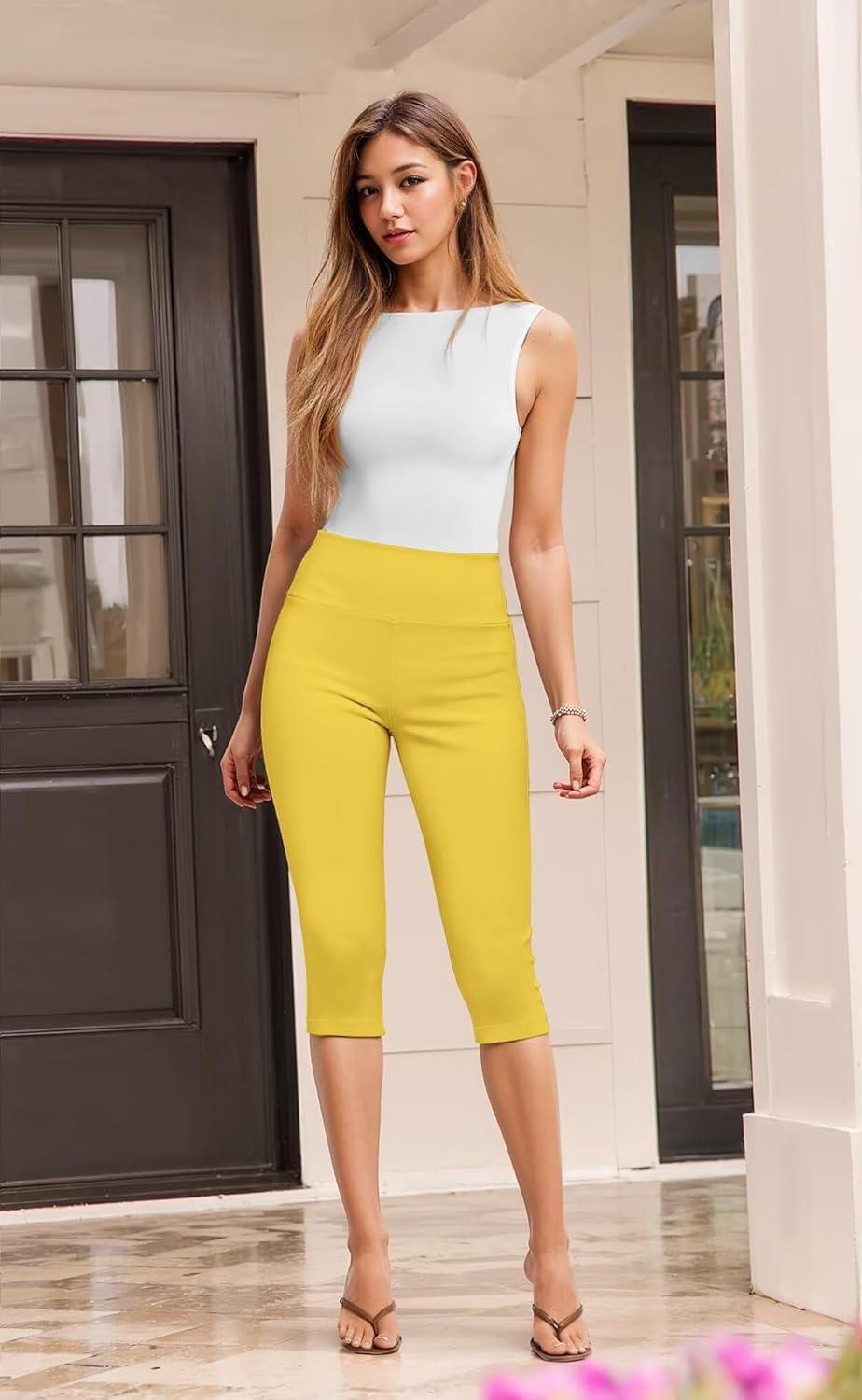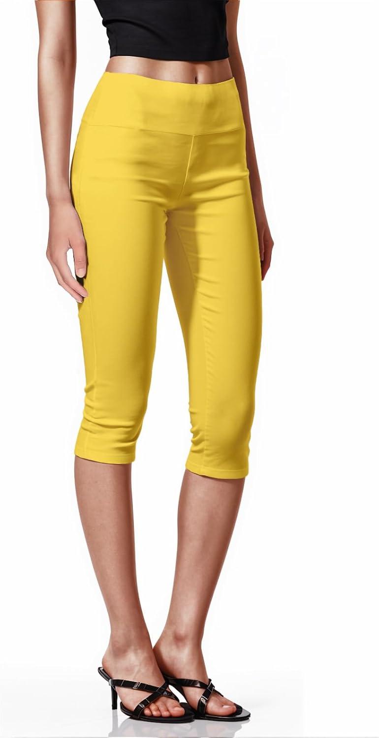 Hybrid & Company Womens Super Comfy Stretch Pull On Millennium Twill Capri Shorts(Capri-yellow)