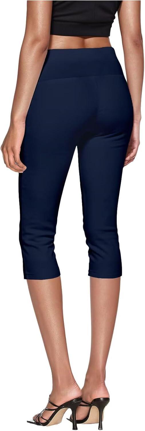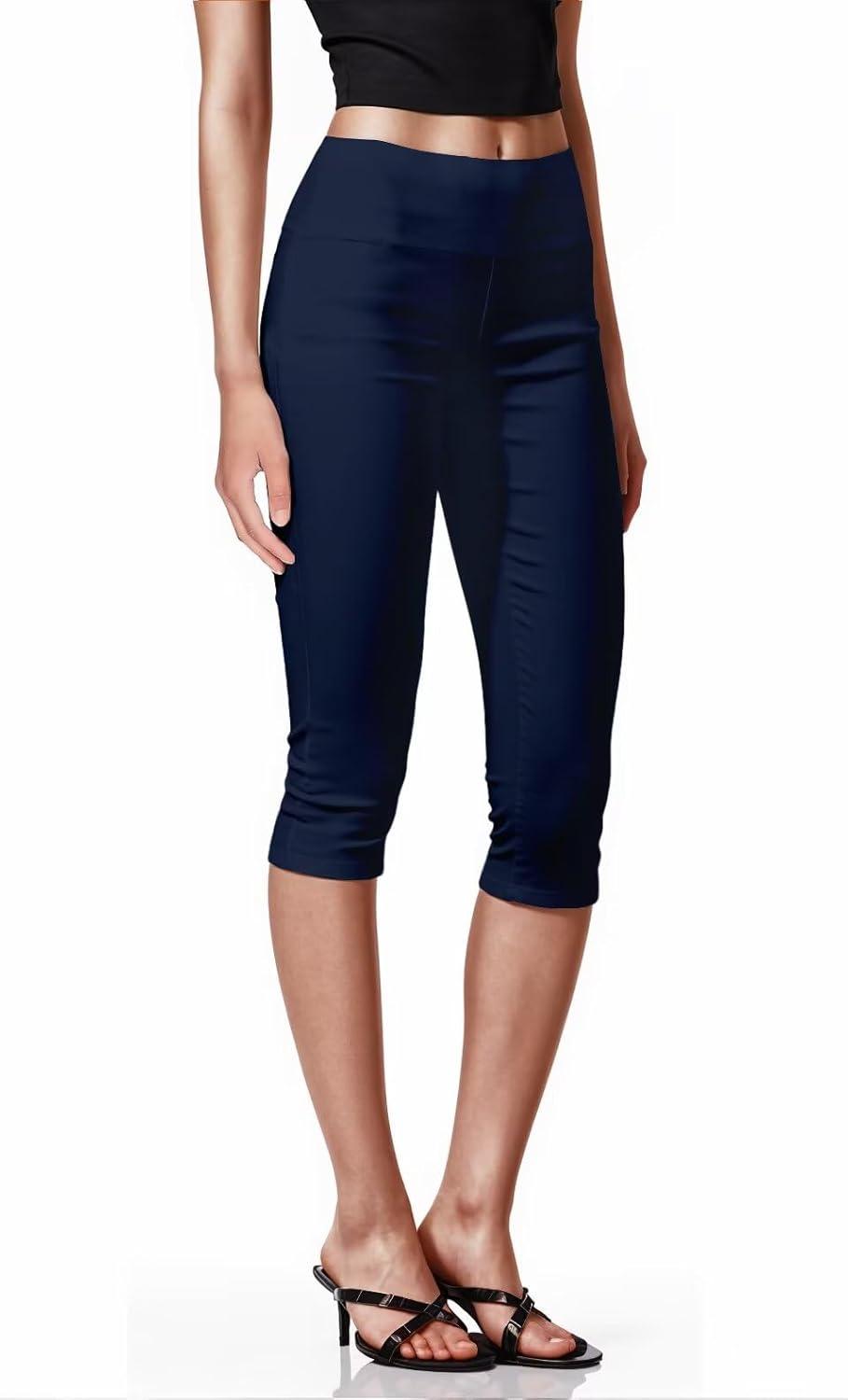 Hybrid & Company Womens Super Stretch Causal Pull On Millennium Twill Bermuda Shorts(Capri-dark Navy)