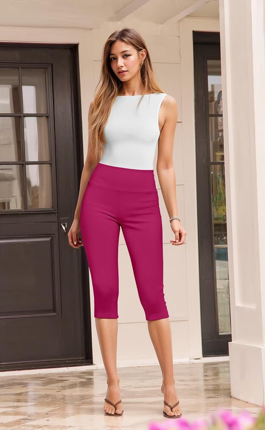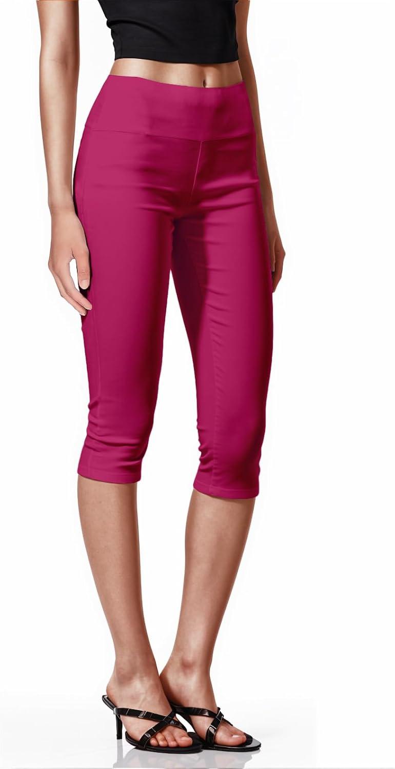 Hybrid & Company Womens Super Stretch Causal Pull On Millennium Twill Bermuda Shorts(Capri-fuchsia)
