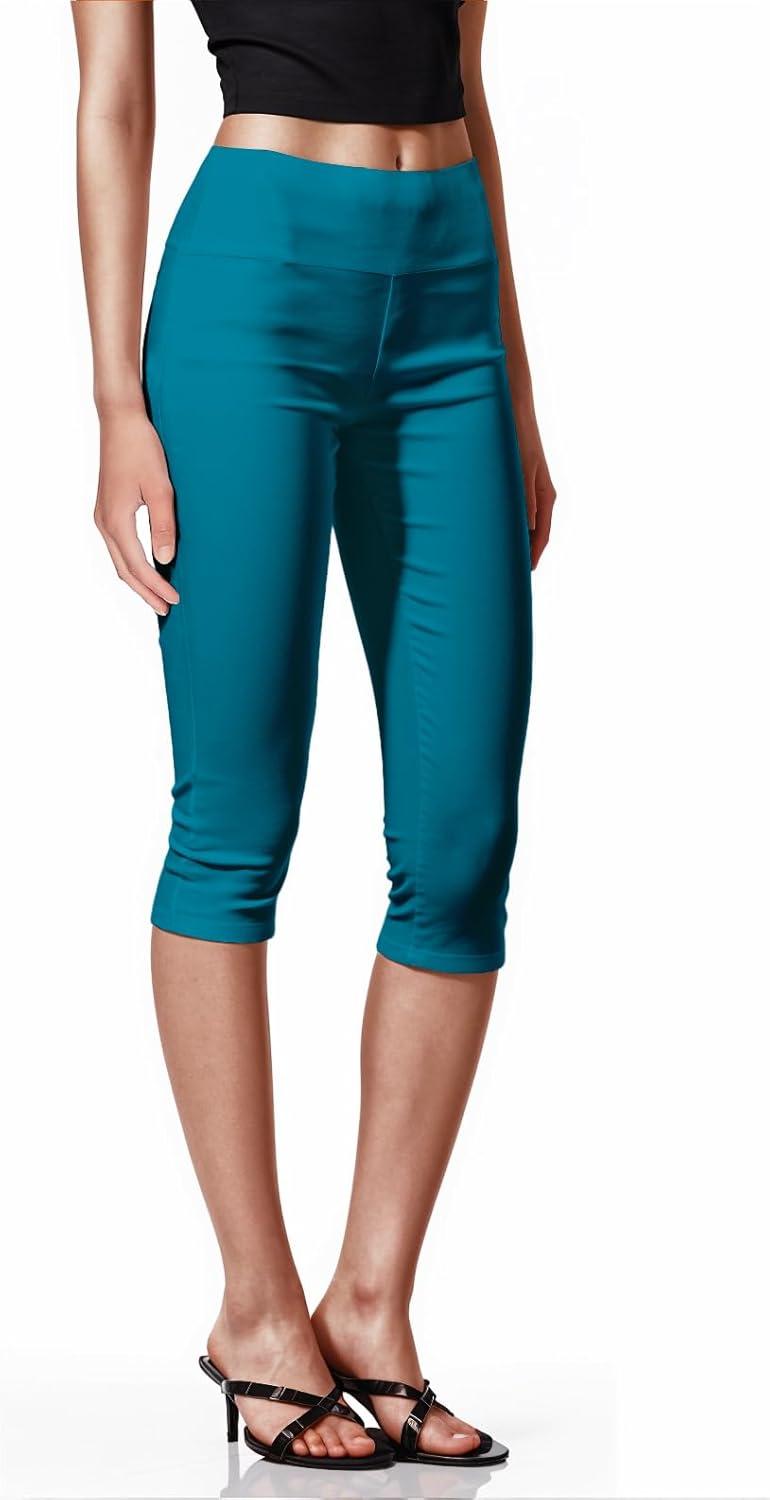 Hybrid & Company Womens Super Stretch Causal Pull On Millennium Twill Bermuda Shorts(Capri-jade)