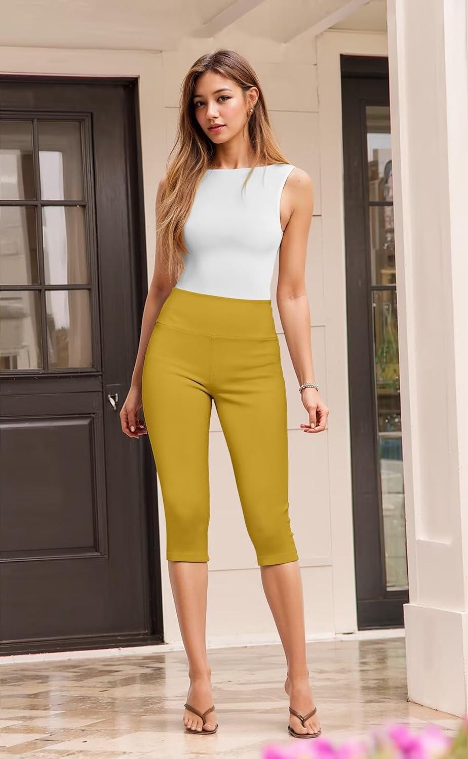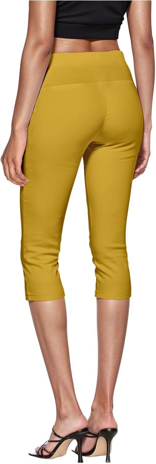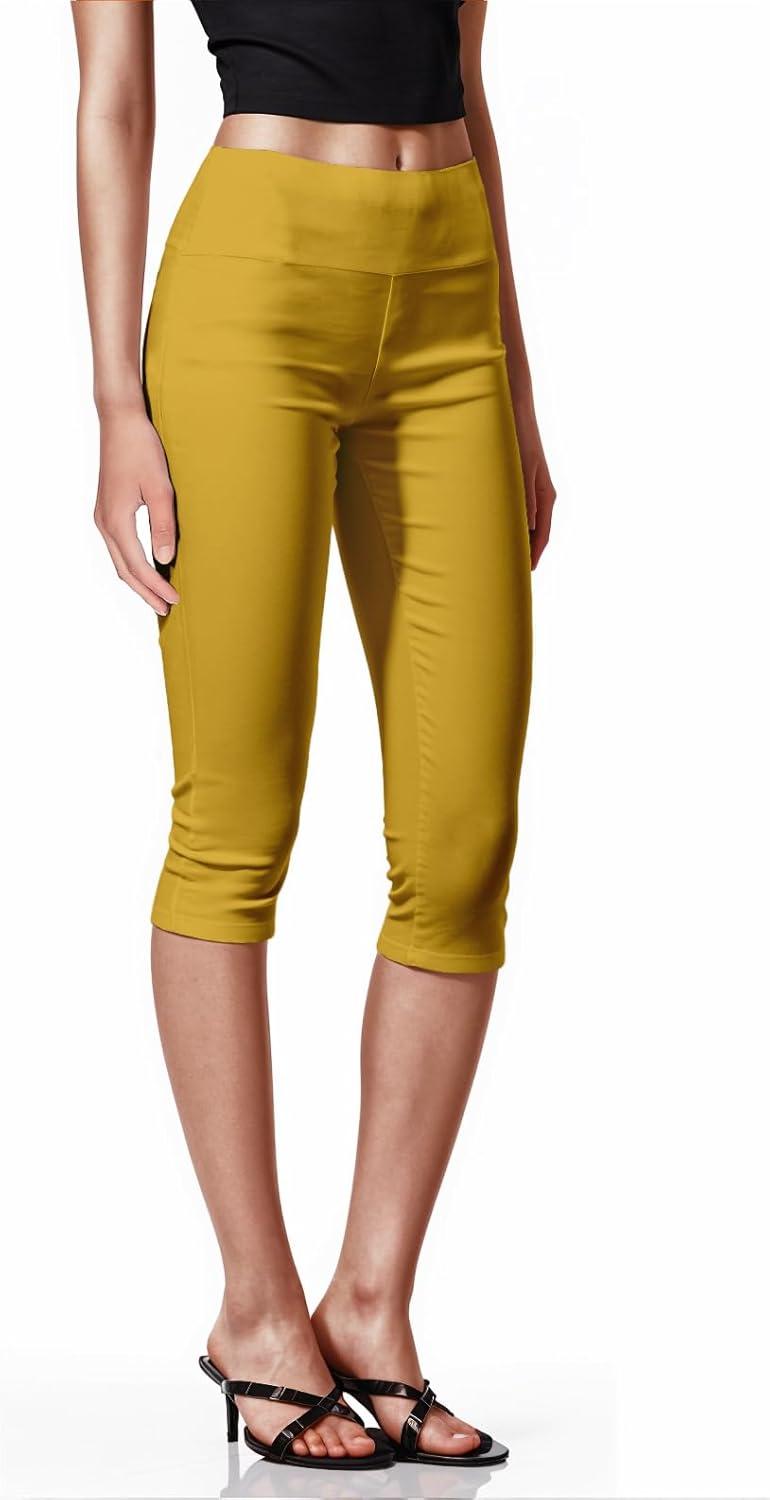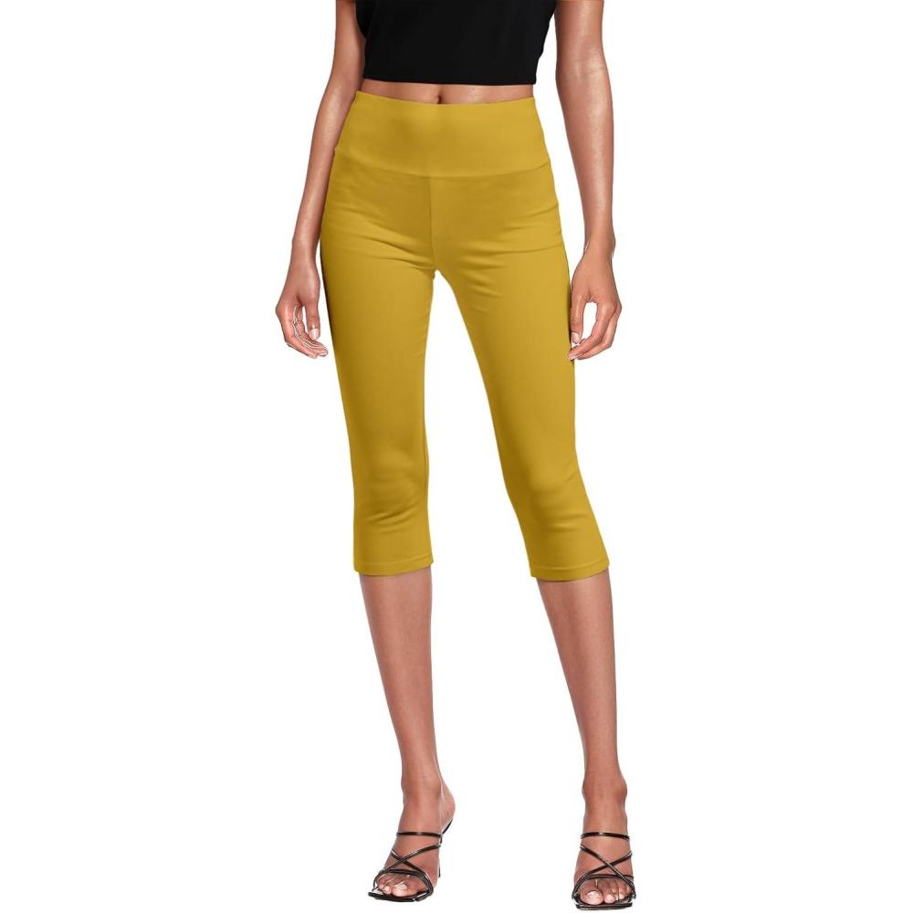 Hybrid & Company Womens Super Stretch Causal Pull On Millennium Twill Bermuda Shorts(Capri-mustard)