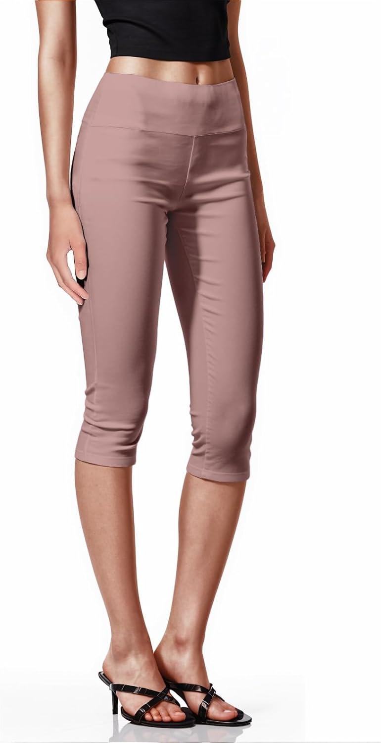 Hybrid & Company Womens Super Stretch Causal Pull On Millennium Twill Bermuda Shorts(Capri-rose)