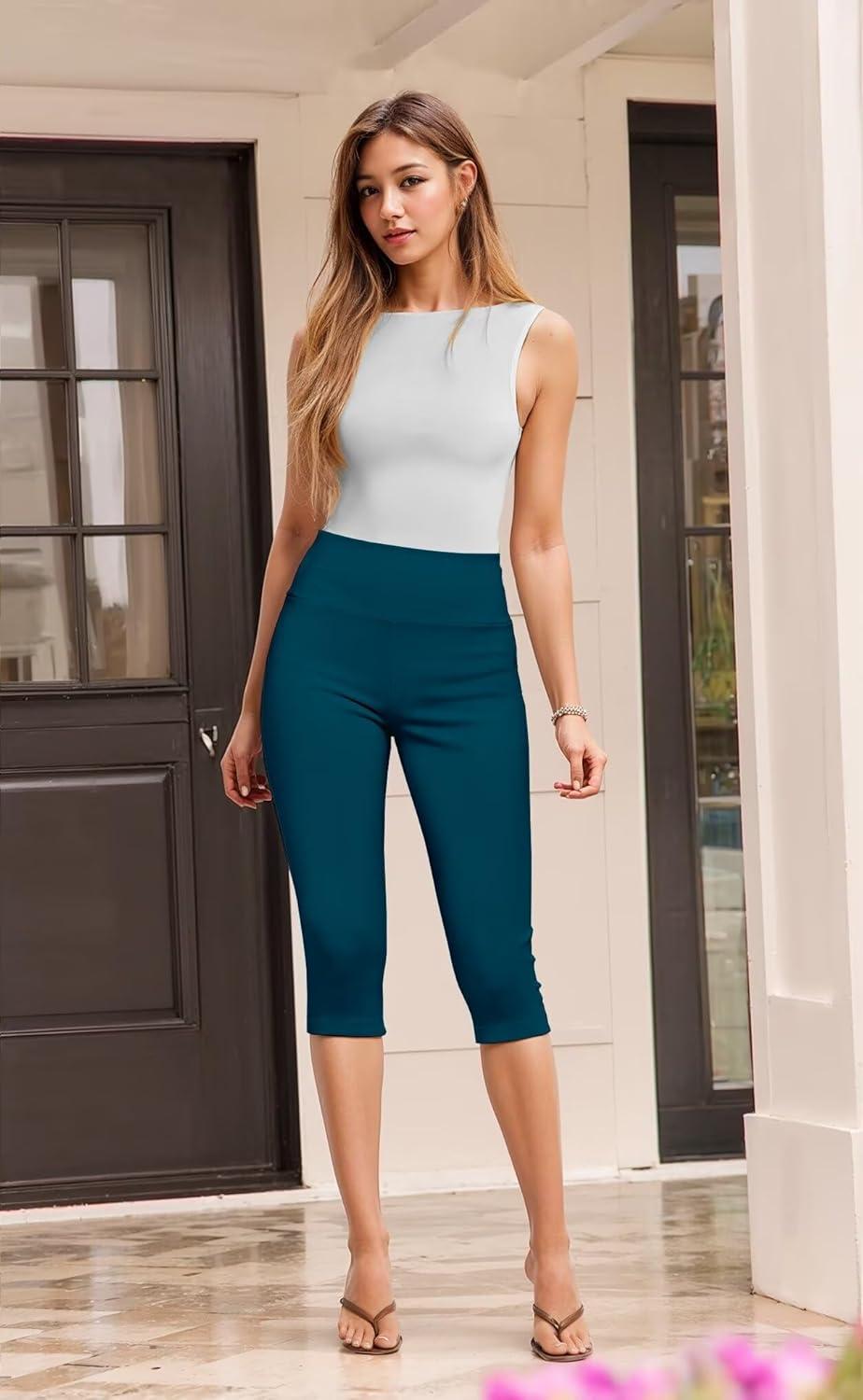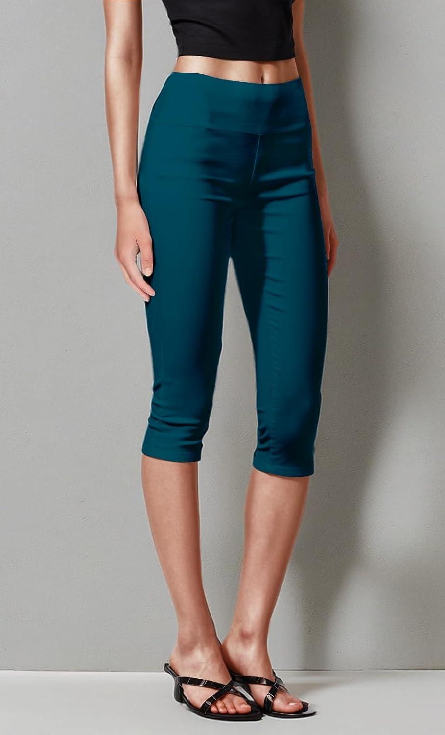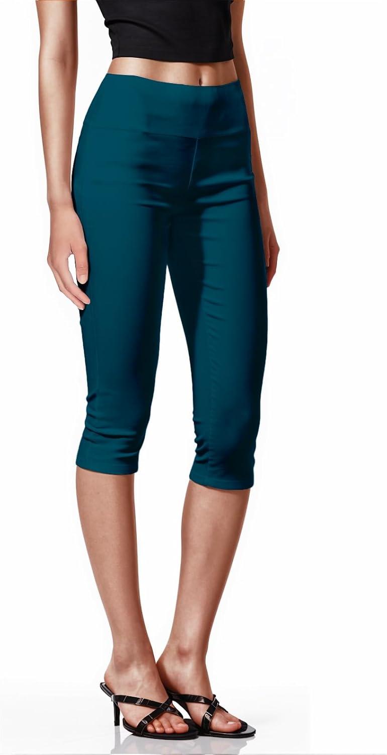 Hybrid & Company Womens Super Stretch Causal Pull On Millennium Twill Bermuda Shorts(Capri-teal)