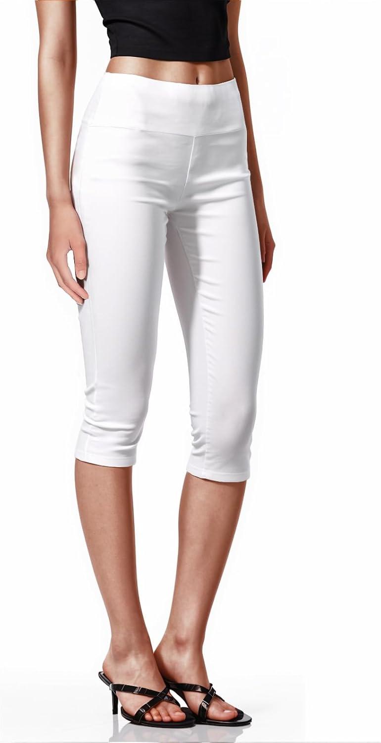 Hybrid & Company Womens Super Stretch Causal Pull On Millennium Twill Bermuda Shorts(Capri-white)