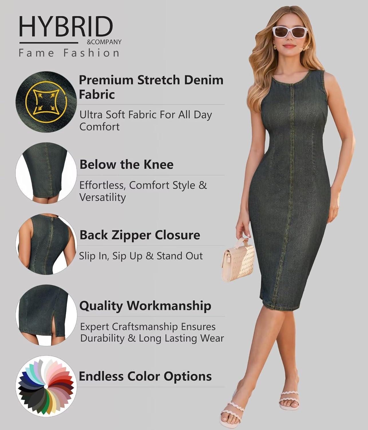 Hybrid & Company Womens Super Stretch Slim Fit Crew Neck Sleeveless Denim Dress(Tint)