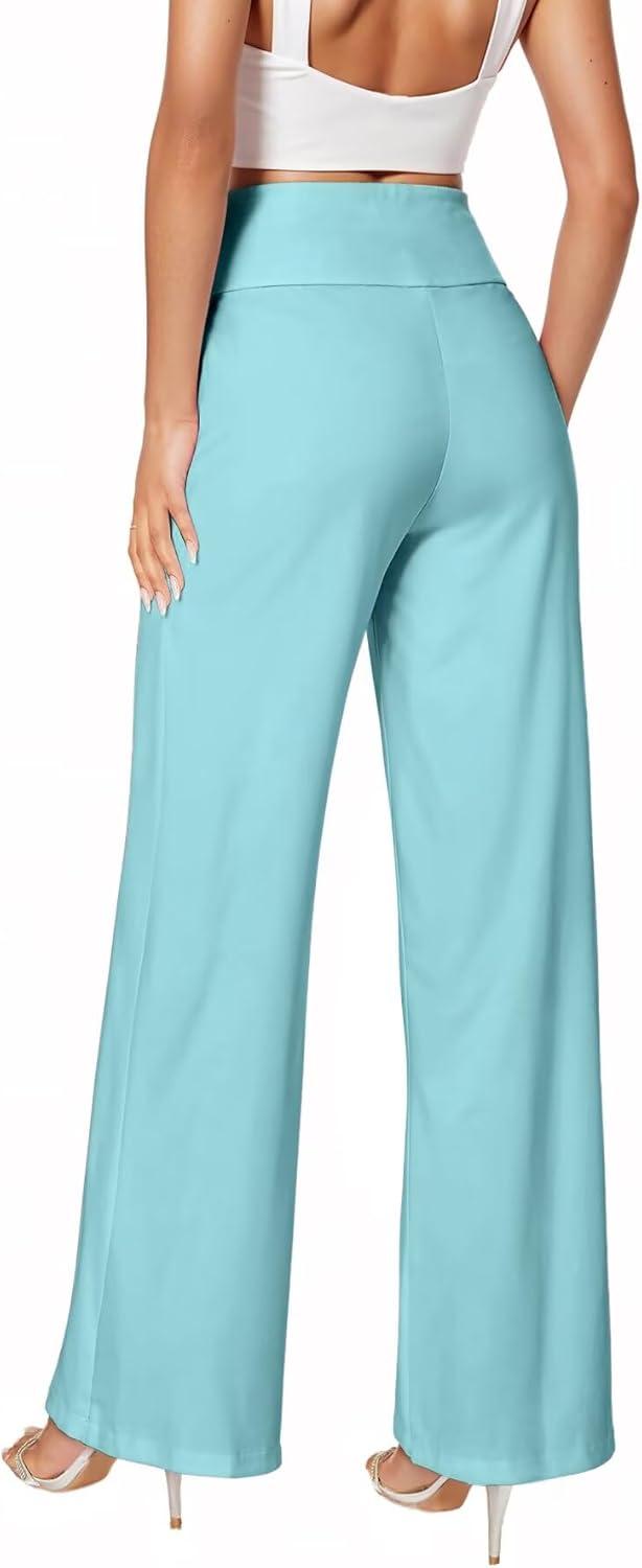 Hybrid & Company Womens Ultra Comfort Ponte Fabric Pull on Casual Wide Leg Pants(Aqua)