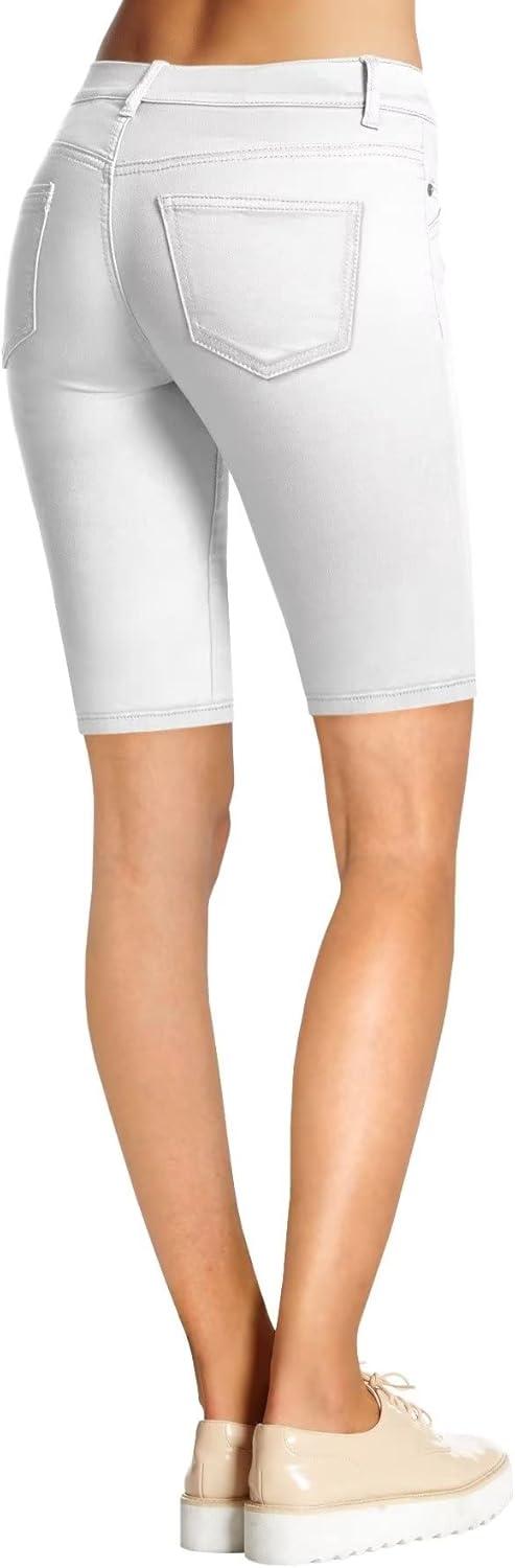 Hybrid & Company Women’s Ultra Stretch Perfectly Shaping Mid Rise Skinny Bermuda Shorts with Pockets(Bermuda-white)