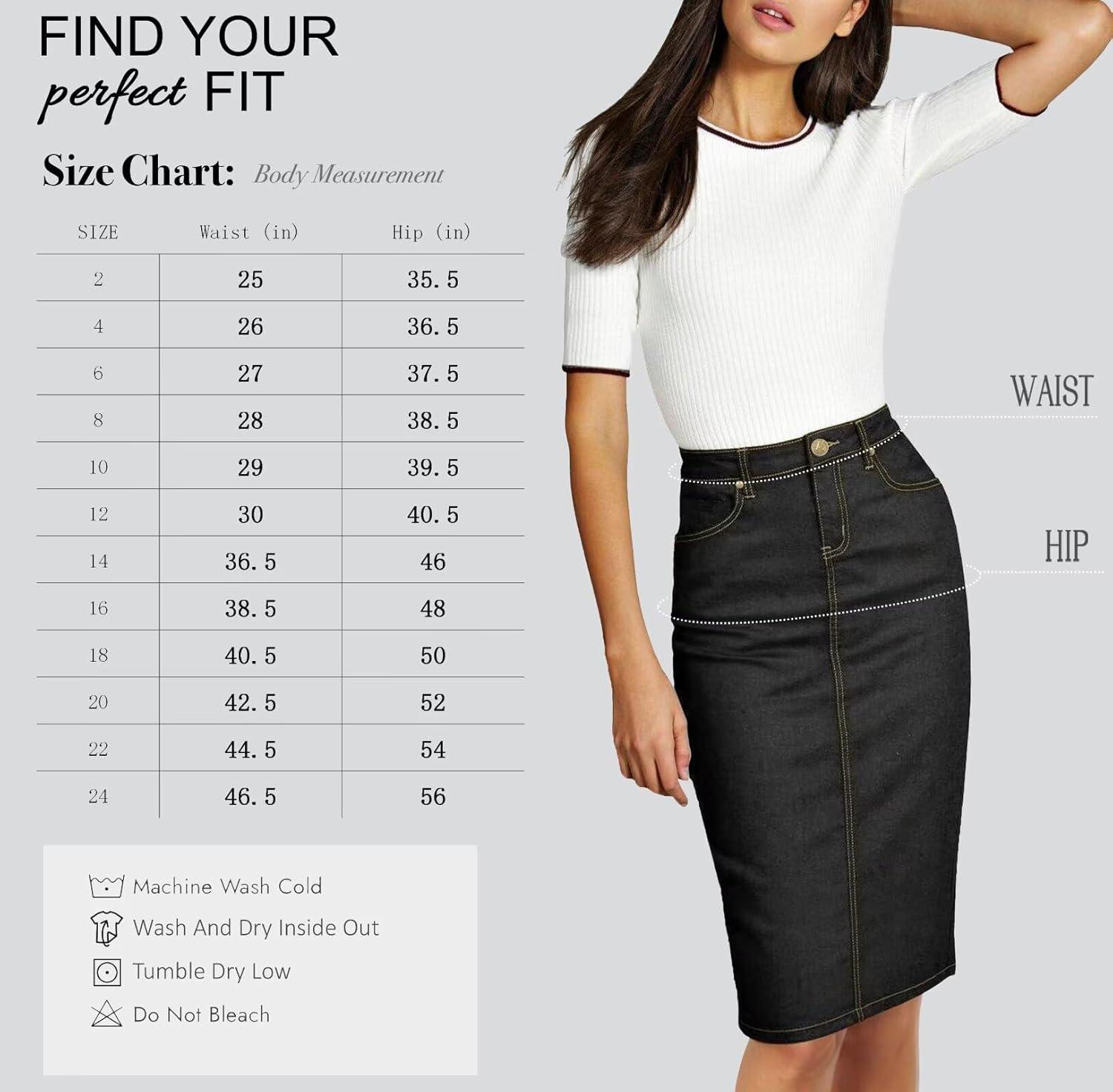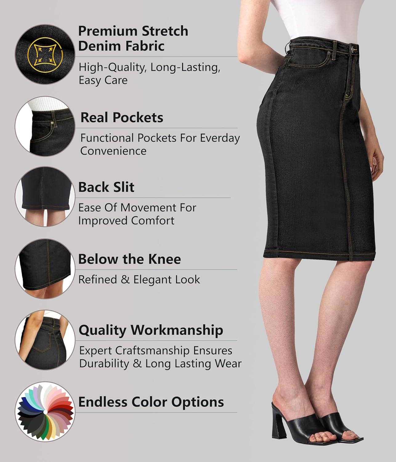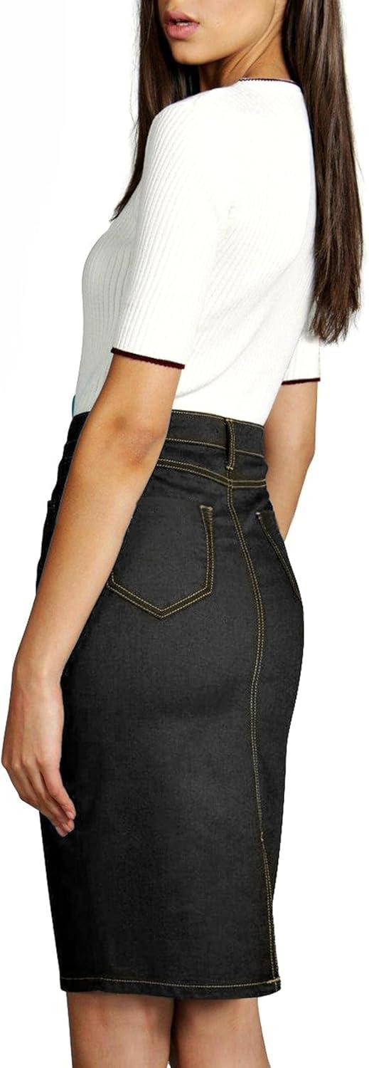 Lexi Womens Stretch Pencil Skirts with Functional Pockets, A Line & Destructed Mini Denim Skirts(Black)