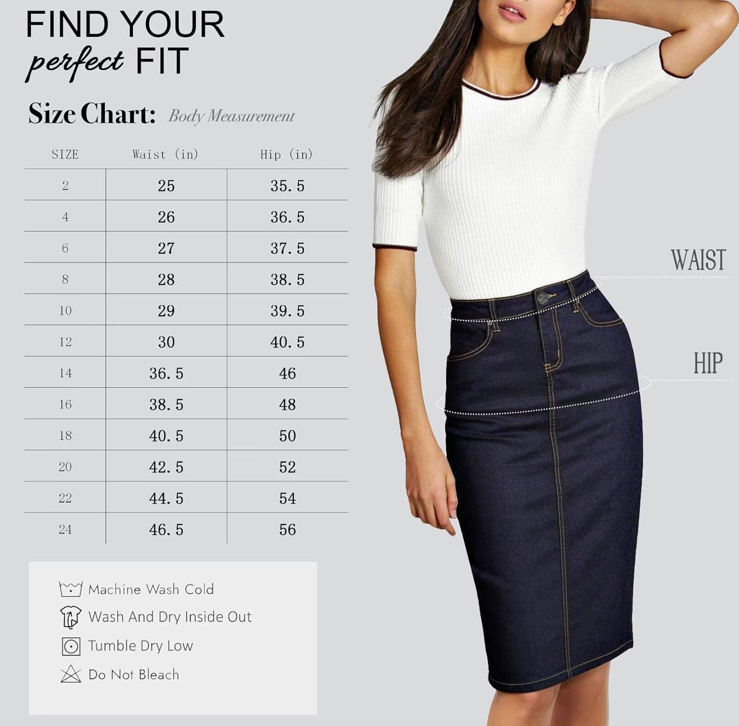 Lexi Womens Stretch Pencil Skirts with Functional Pockets, A Line & Destructed Mini Denim Skirts(Indigo)