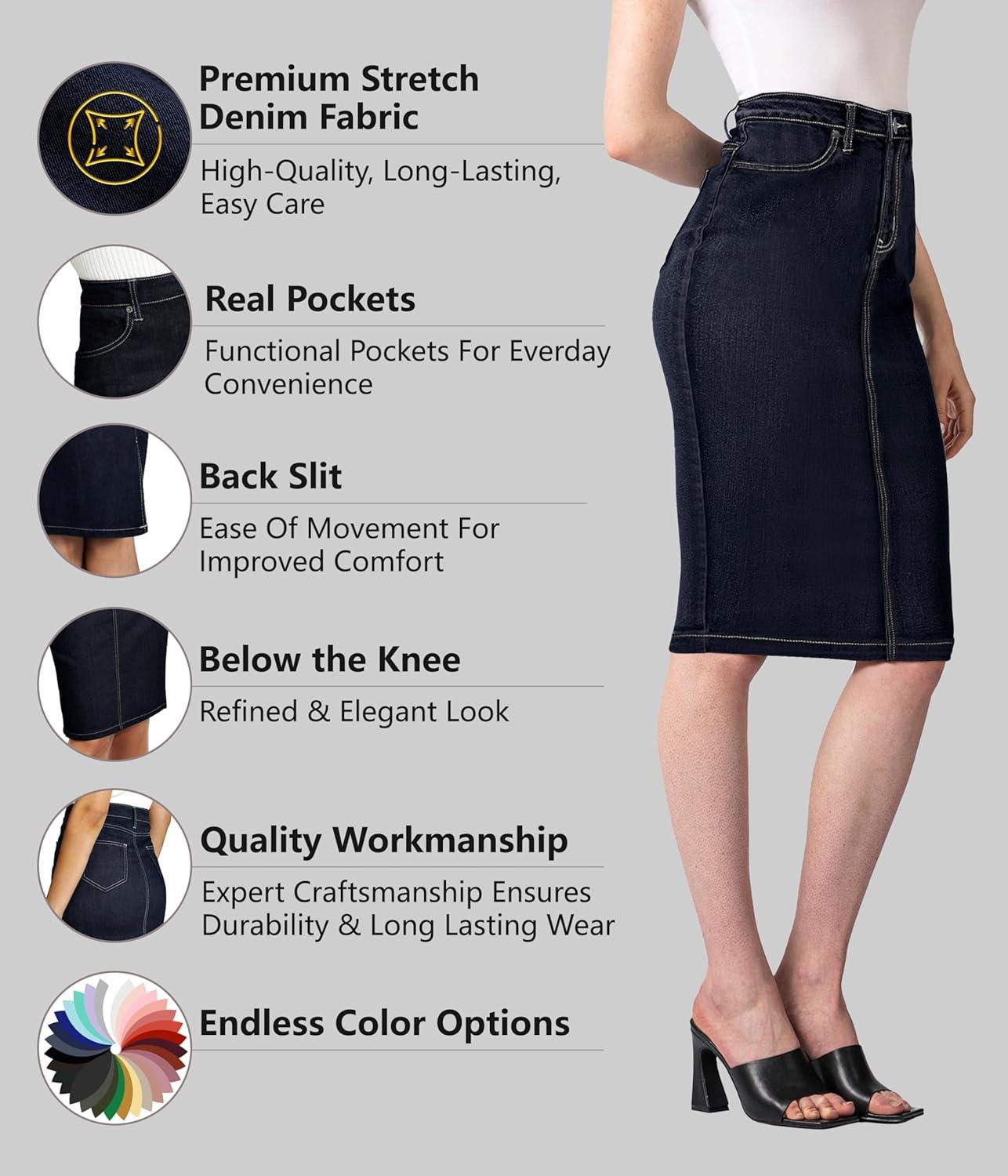 Lexi Womens Stretch Pencil Skirts with Functional Pockets, A Line & Destructed Mini Denim Skirts(Sk22890-potassium)