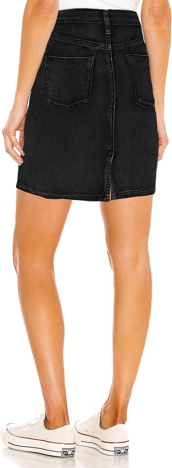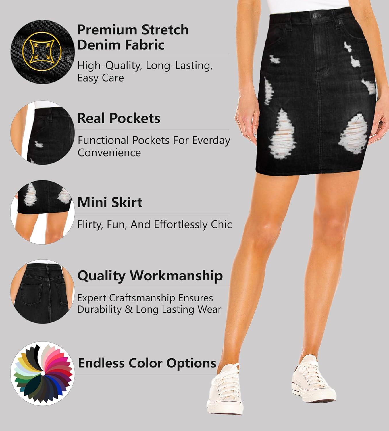 Lexi Womens Stretch Pencil Skirts with Functional Pockets, A Line & Destructed Mini Denim Skirts(Sks22895-black)
