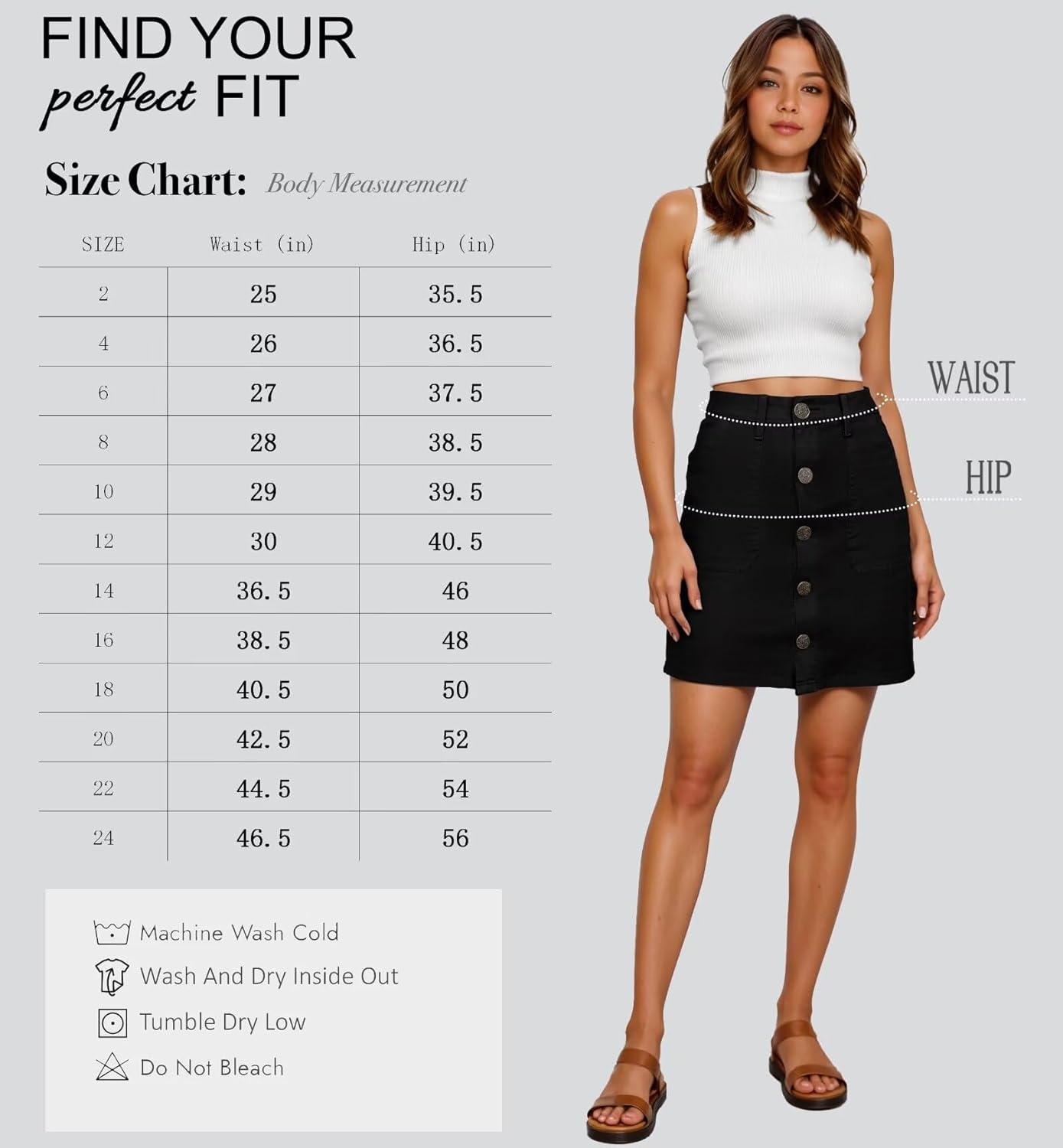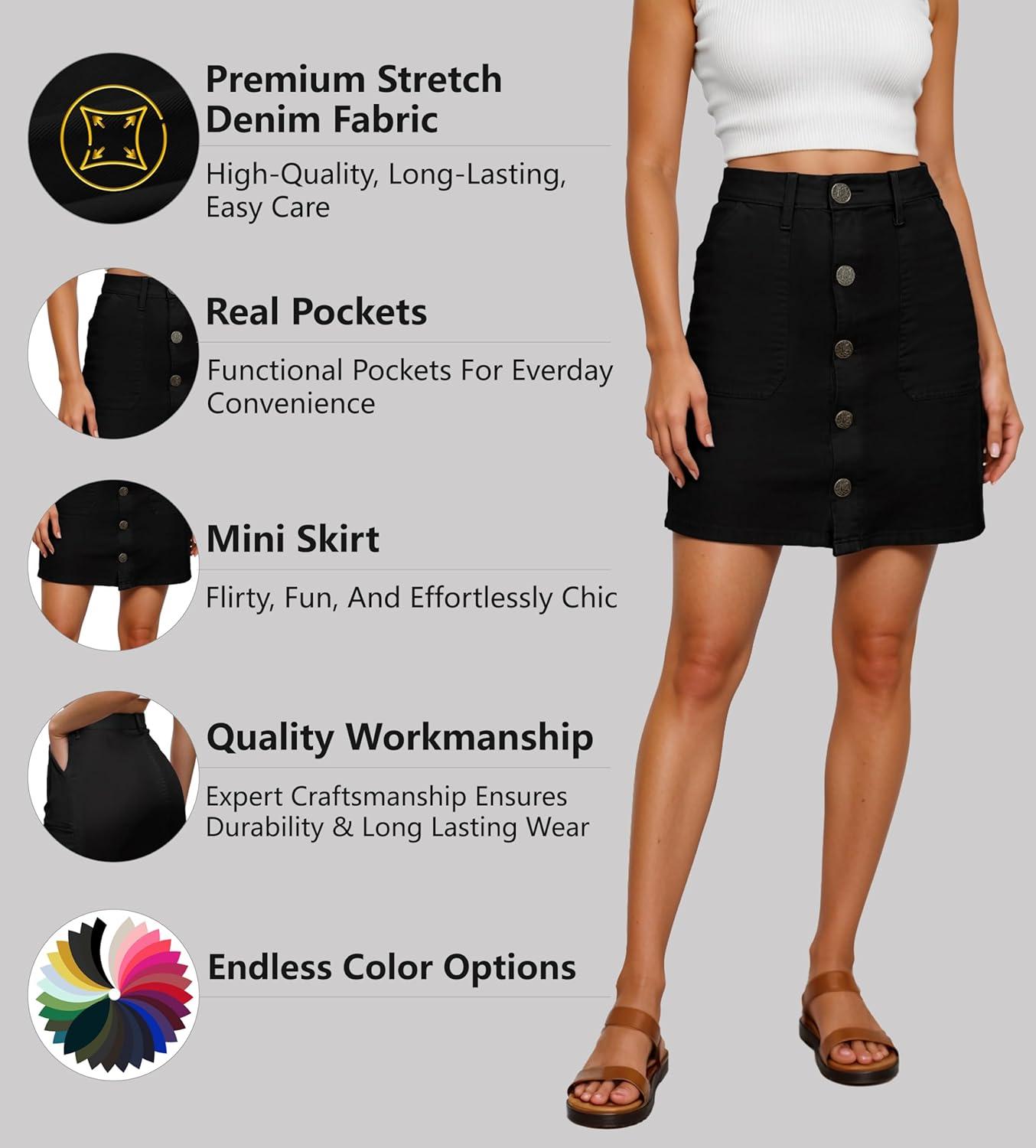 Lexi Womens Stretch Pencil Skirts with Functional Pockets, A Line & Destructed Mini Denim Skirts(Sks48012-black)