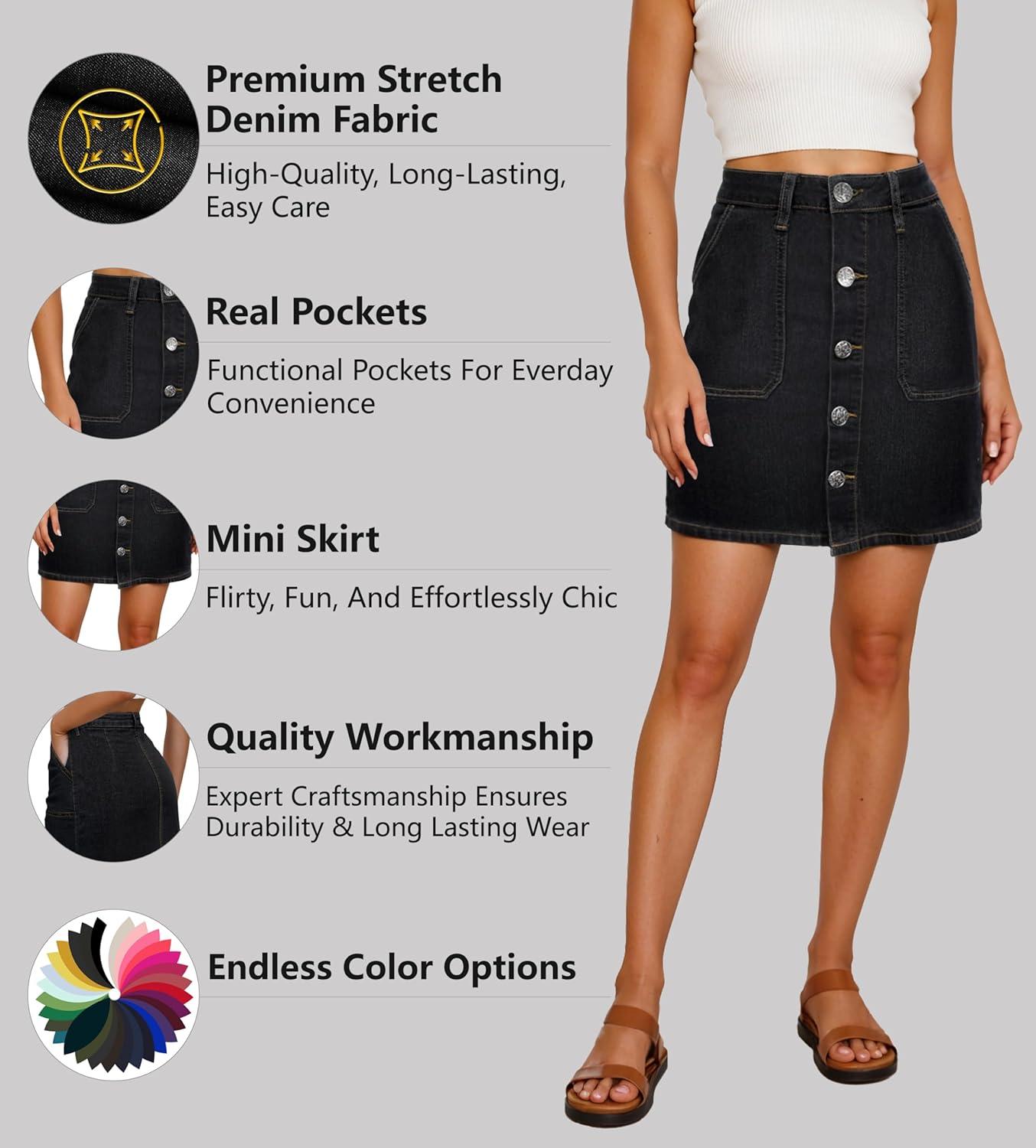 Lexi Womens Stretch Pencil Skirts with Functional Pockets, A Line & Destructed Mini Denim Skirts(Sks48015-black)