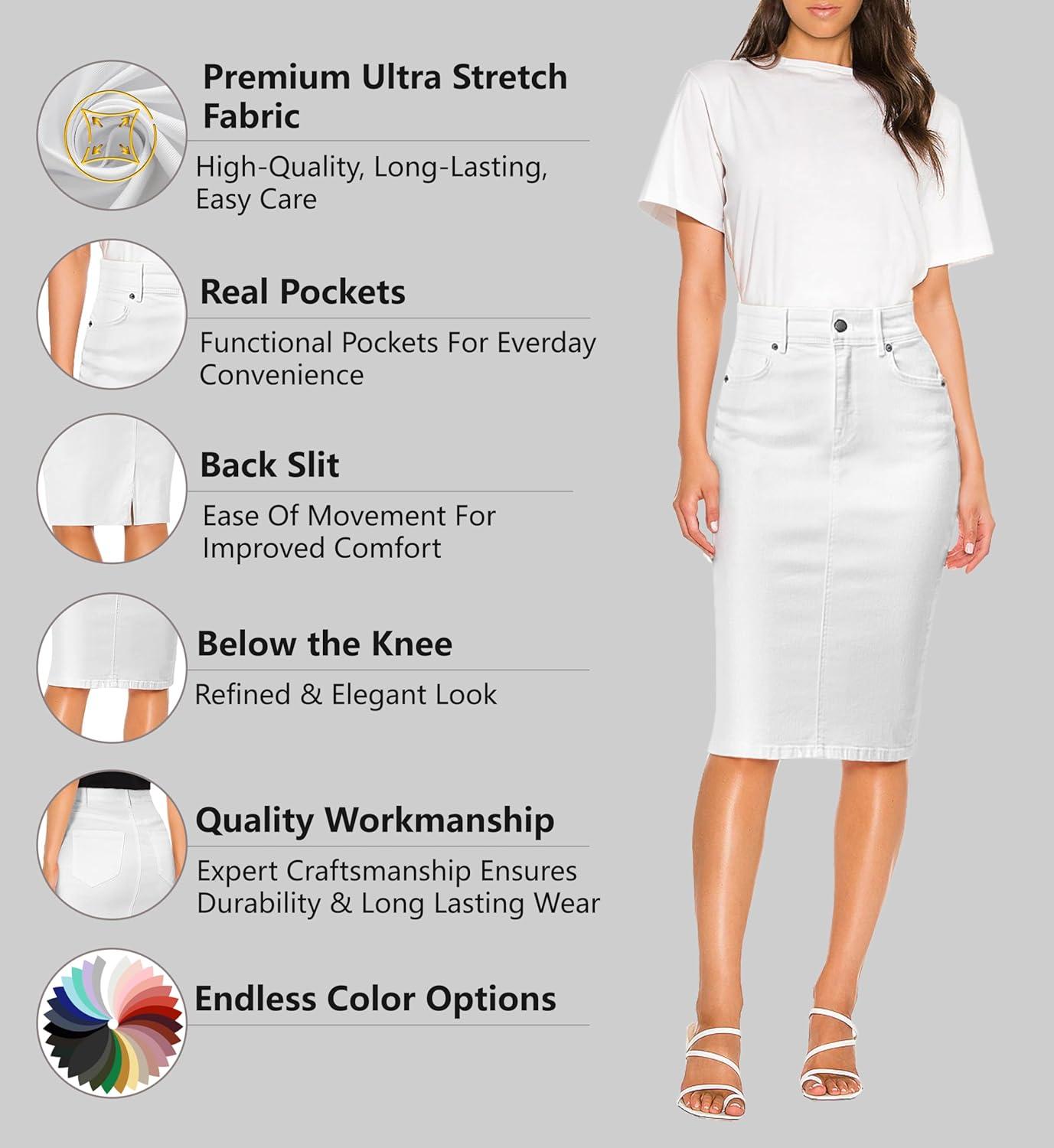 Lexi Womens Super Comfy Hyper Stretch Denim Skirt(Sks44876-white)