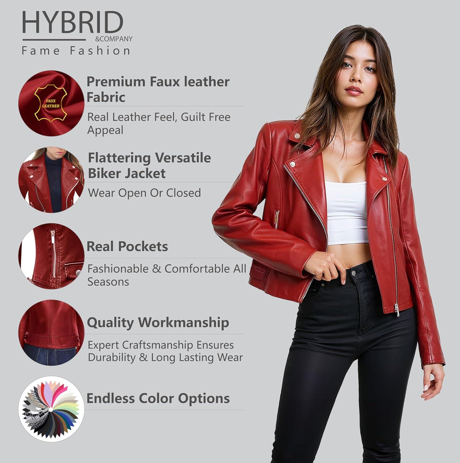 Olivia Miller Womens Faux Leather Zip Up Moto Biker Jacket(Jk5208-red)